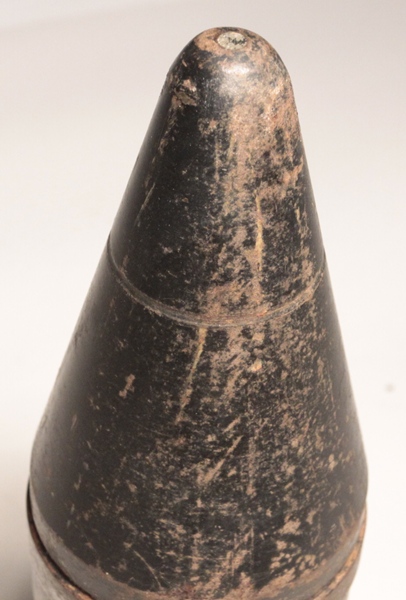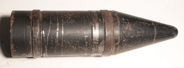 Three inch diameter, unmarked, drill projectile solid and inert.