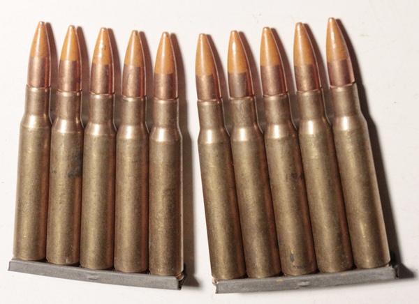 Quantity of 10 rounds, two stripper clips of 5 rounds each, headstamp DA 61.
