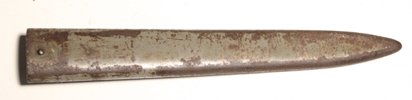 All metal twisted steel ersatz bayonet produced as an emergency measure during World War One to fit the 1895 Mannlicher rifle. Original, as found condition. Steel 1895 scabbard has original field gray paint remaining.