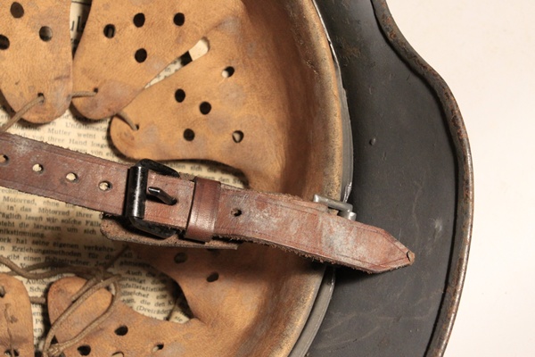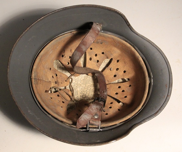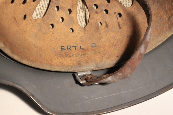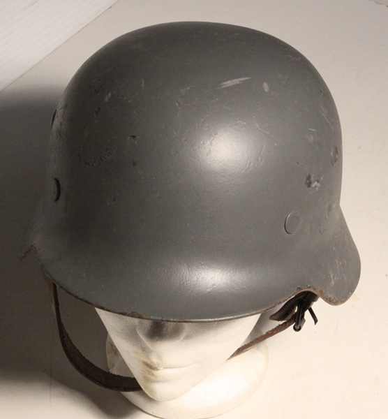 Original German M35 helmet re-issued post WW2 for Austrian Gendarmerie use in late 1940’s. The original German paint is completely painted over in a light gray paint inside and out. Original German M31 liner. Leather chinstrap is Austrian and maker marked. Shell size 064 with number visible at rear 696. Interesting collectable or candidate for restoration to German WW2 configuration.