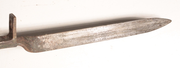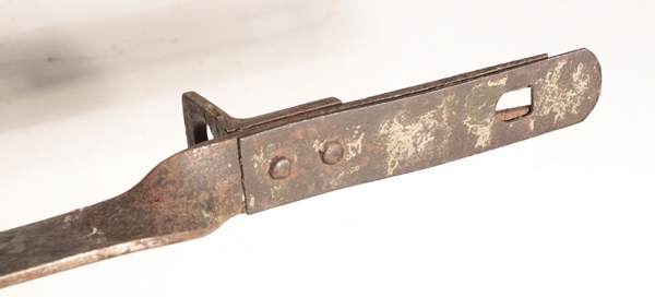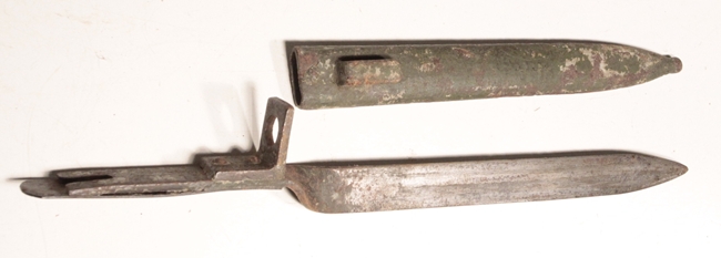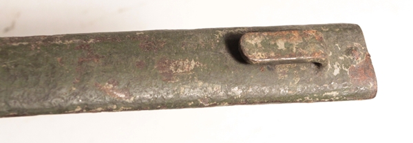 All metal twisted steel ersatz bayonet produced as an emergency measure during World War One to fit the 1888 and 1890 Mannlicher rifle. Original, as found condition, sold as is. Steel scabbard has period green paint remaining as shown in photo. Ref. Kiesling No. 136