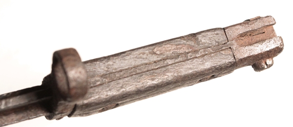 Cruciform epee blade. Fits Mannlicher Model 1895 Gendarmerie Carbine. Quite an uncommon WW1 era bayonet and complete with original scabbard, unfortunately the bayonet is in relic condition and no markings are visible.