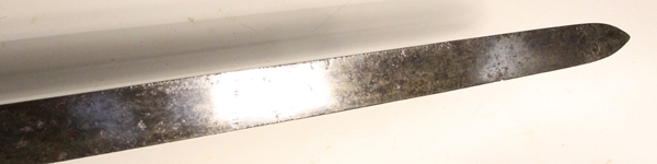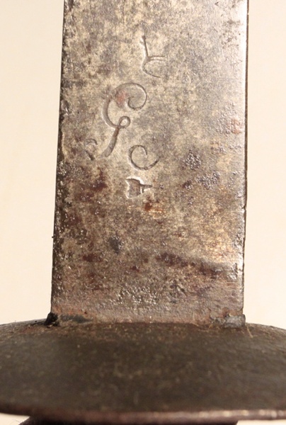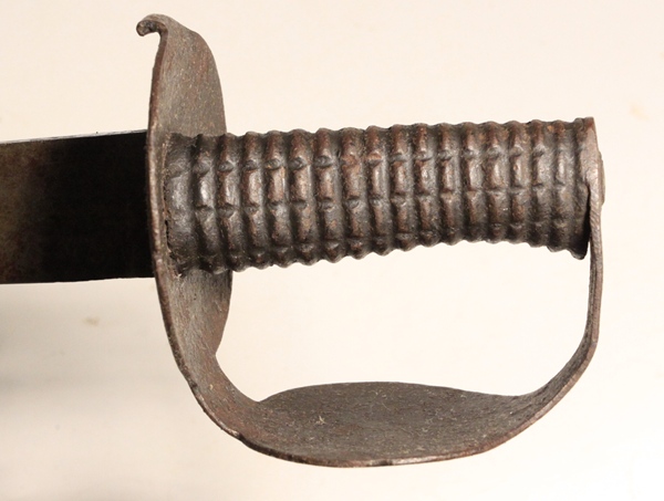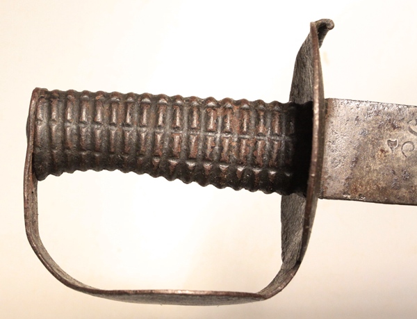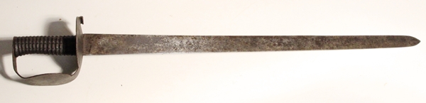 This is the first pattern naval cutlass issued to British seamen. Original with Royal Cypher GR marked into the blade and still visible. Also partial crown visible above the cypher. Blade is bright with uniform patina and very good condition. Overall length 34 inches, blade is 29 inches long. Handle is all steel with original black paint remaining. Very unique Napoleonic era sword.