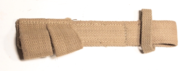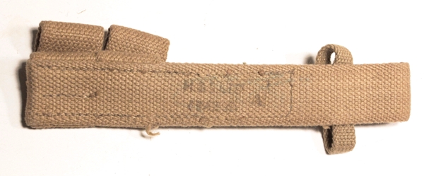 Long khaki web frog with top keeper strap for the P1907 bayonet. Maker marked on back but not legible.