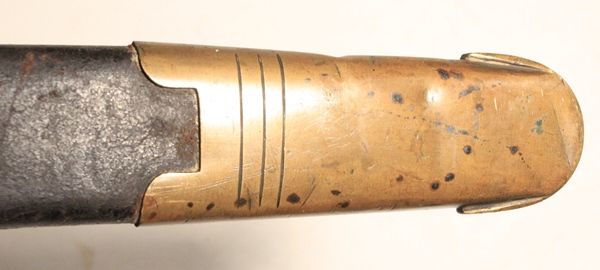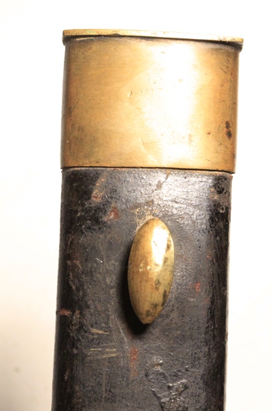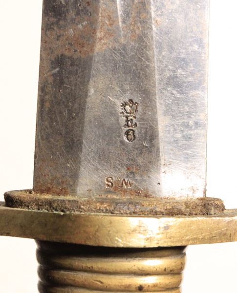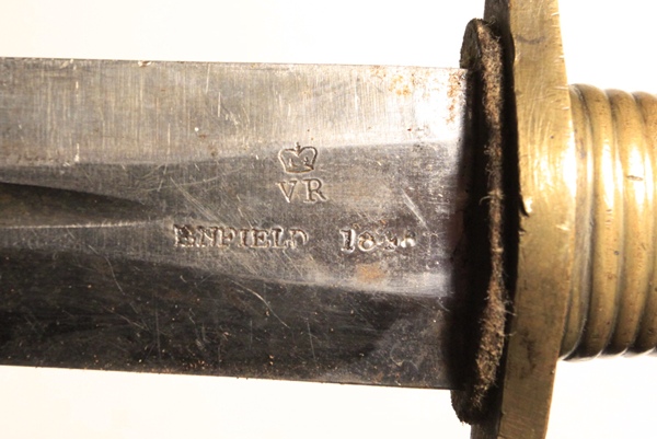 Original 1837 pattern first model Brunswick bayonet with excellent scabbard. Clearly marked Crown over VR, ENFIELD manufacture date appears to be 1846. Opposite side Enfield proofed with W.S.  Marking on the pommel number 65 with Crown proofs. Blade is very good. Scabbard is original and in excellent condition with Broad Arrow and Board Ordnance marking on back.