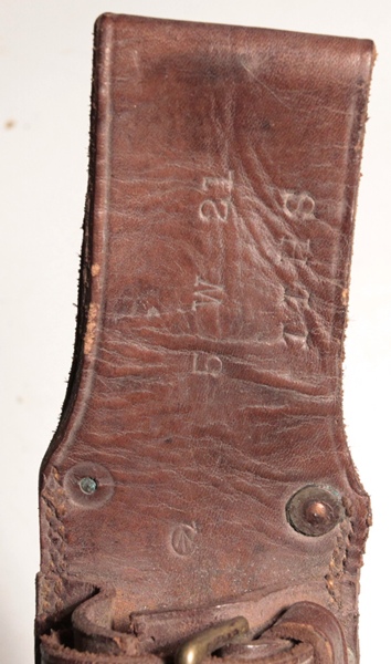 Canadian leather frog for P1907 bayonet. Marked with C broad arrow.