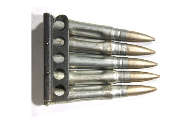 1942 Canadian Pattern. Rounds are all 1942 Dominion Arsenal headstamp. Mk III charger clip. Completely inert.