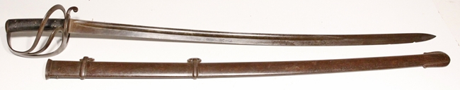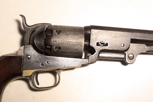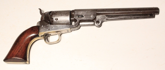 Lot of 2 items including a Colt 1851 Navy London contract revolver and British Pattern 1853 Cavalry swodd. This combination of arms would have been used by Canadian Militia officers stationed in Upper Canada circa 1855. The Colt pistol is Colt London production, British proofed, .36 cal. with 7 ½ inch octagonal barrel. Serial numbers match. Antique firearm, no license required to purchase. P1853 sword is proofed crown over M, handguard marked K over 7, scabbard B.F. over 34. Neither item has UC or Upper Canada marking.