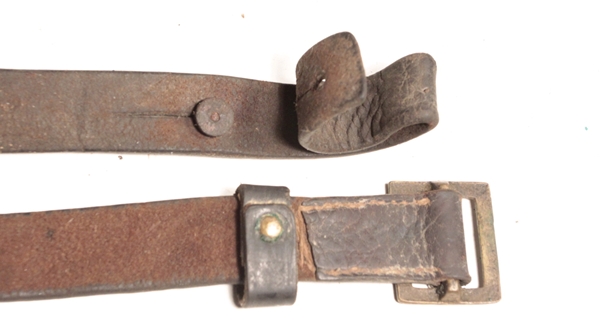 42 inches long, brass buckle, unmarked. Used in good condition, sound, no tears but was definitely issued and used.