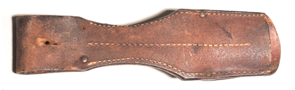 Original leather belt frog for German 1898/05 butcher bayonet. Very good condition. Front is black, back is original brown leather with maker marking barely visible but shows date 1916. Stitching and rivets are sound.