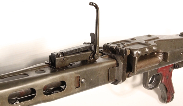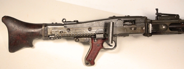 German MG42 machine gun complete. Markings have German Waffenamt removed by post war country of use by grinding away. Deactivated, topcover opens, bolt retracts. Does not cock and click. No license required to purchase.