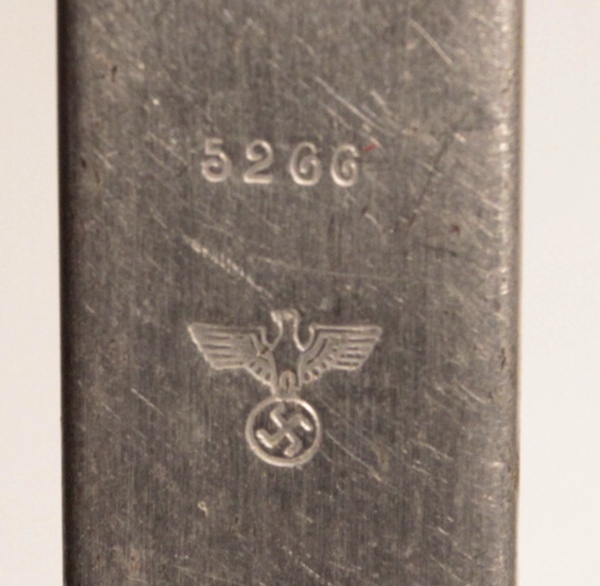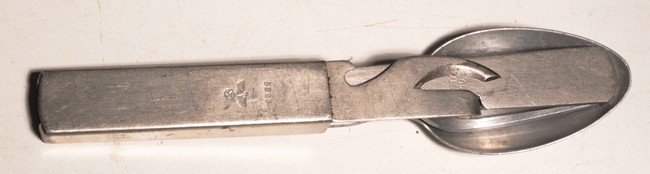 Four piece mess utensil set including can opener, fork, spoon and knife. Can opener handle is serial numbered and marked with Wehrmacht eagle. All original and very good condition.