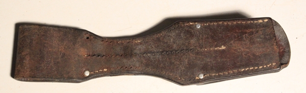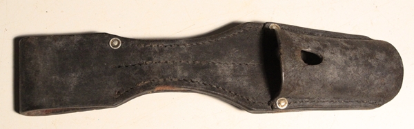 Original black leather frog for German WWII 1884/98 III bayonet. Very good condition with aluminum rivets. Missing 1 rivet. Marked on back, difficult to read.
