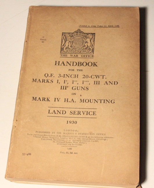 Large, thick, handbook, 6 inches wide x 9 ¾ high covering all aspects of the artillery piece including several fold outs, drawings, some in full colour. Very good condition