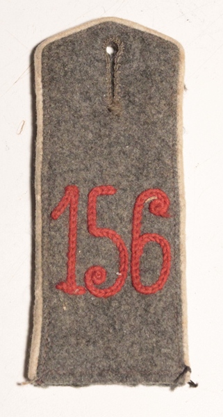 Red number 156 sewn directly onto Feldgrau shoulder strap. Infantry white piping. One strap only.