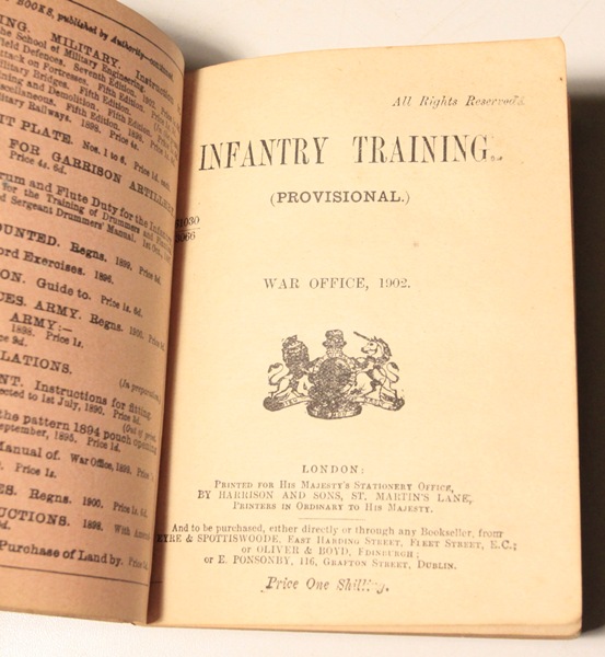 British War Office publication 1902. Private purchase. Used, very good condition.