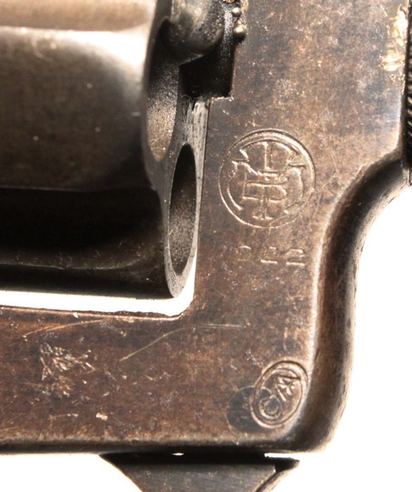 Officer’s model revolver manufactured by Metallurgica Bresciana Gia’ Tempini, Brescia. Serial number B3716. 1922 manufacture. Nicely marked. Small chip on left grip as shown in photo. The deactivation procedure renders it with no moving parts. No license required to purchase. For sale in Canada only.