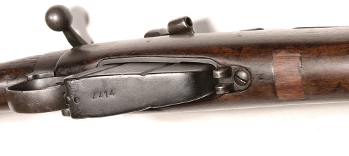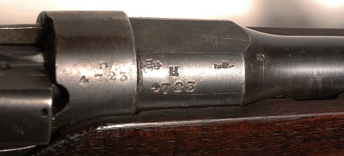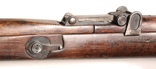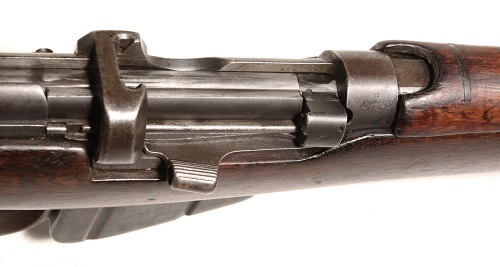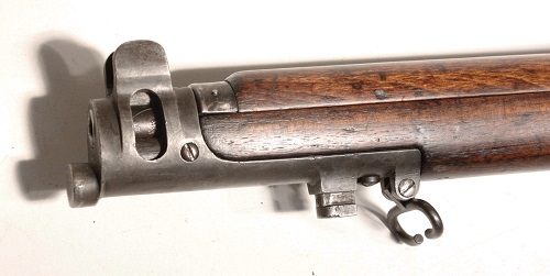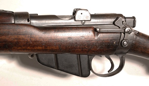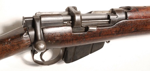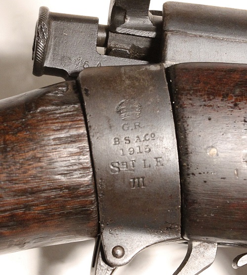 Original Mk III rifle manufactured 1915 by B.S.A. Co. Complete with long range volley sights front and back. Receiver, barrel and rear sight numbers match. Bolt, magazine and nose cap do not. Bore is very good, dark with strong rifling.