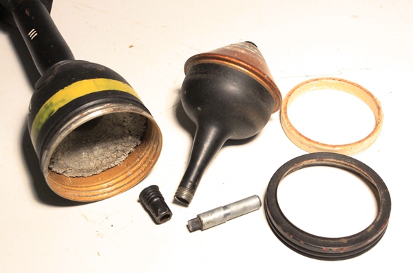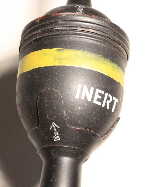 All original and very good condition, very nicely marked with dummy fuze assembly present, empty and inert. Disassembles as shown in photo.