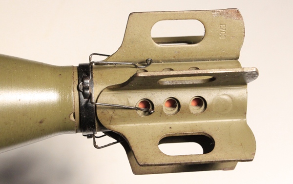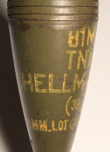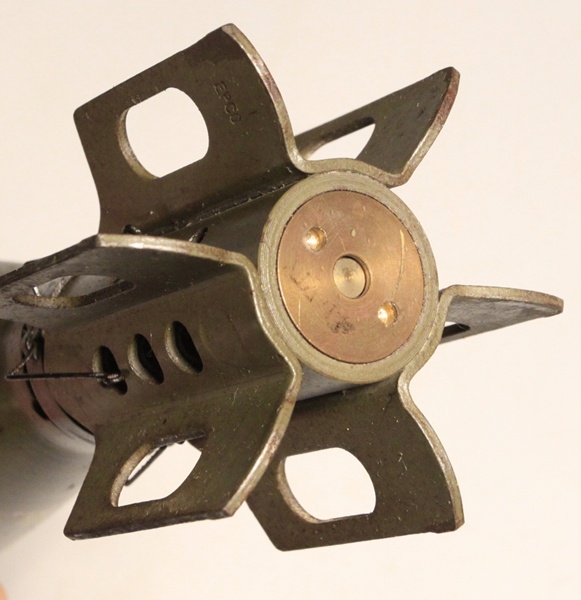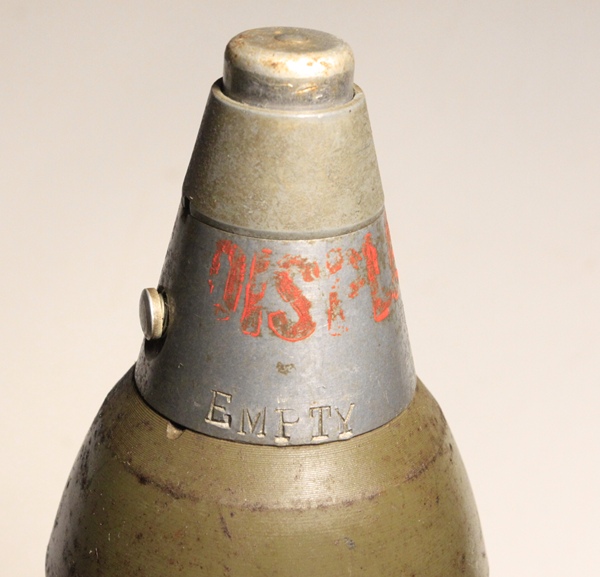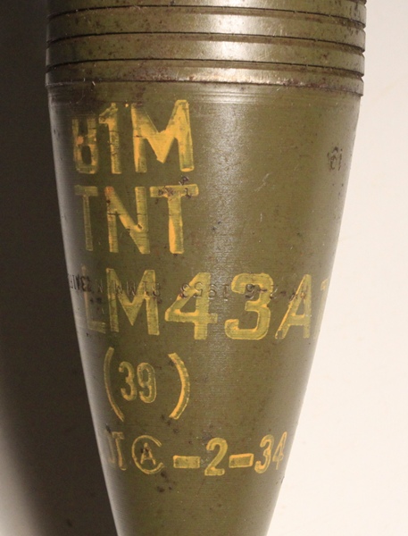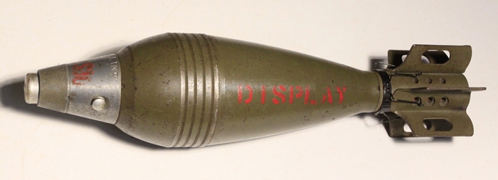 Superb inert display example of US High Explosive Fragmentation fin stabilized mortar bomb.